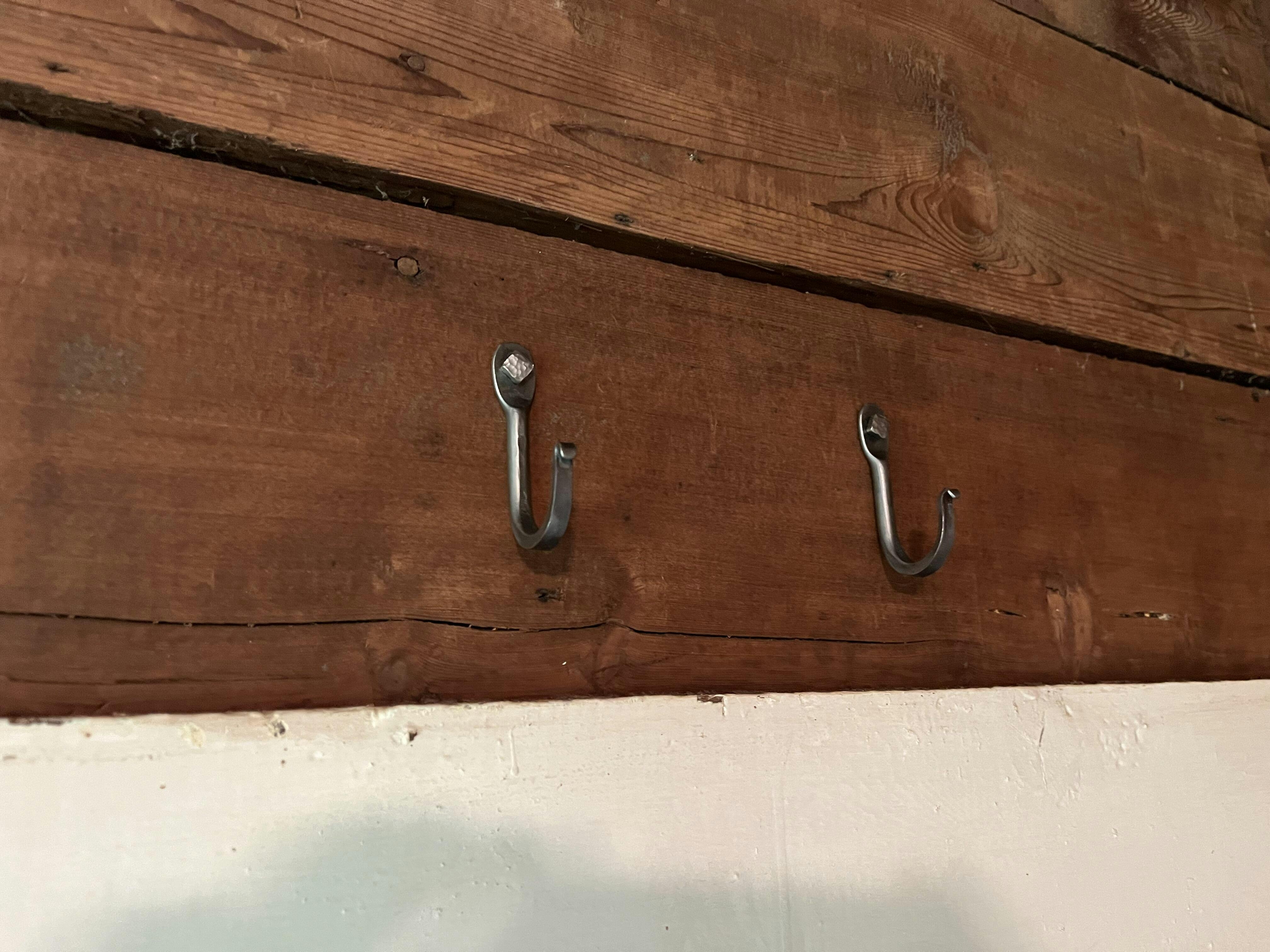 Need a hook for your wall to hold your hat, jacket, keys, bag, and so on? Well look no further, here we have the hand forged wall hook! Available in 2 sizes and 2 finishes. Would be a perfect addition to that open spot on the wall. Forged by hand and hammer in 5/16" mild steel and 1/4" mild steel, these are sure to add a bit of character where ever you place them.